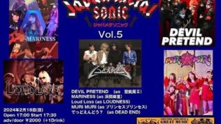 ジャパメタソニックVol.52024年2月18日(日)adv / door ¥2,000(+1drink)17:00 open①17:30-18:05 DEVIL PRETEND②18:20-18:55 Loud Loss③19:10-19...